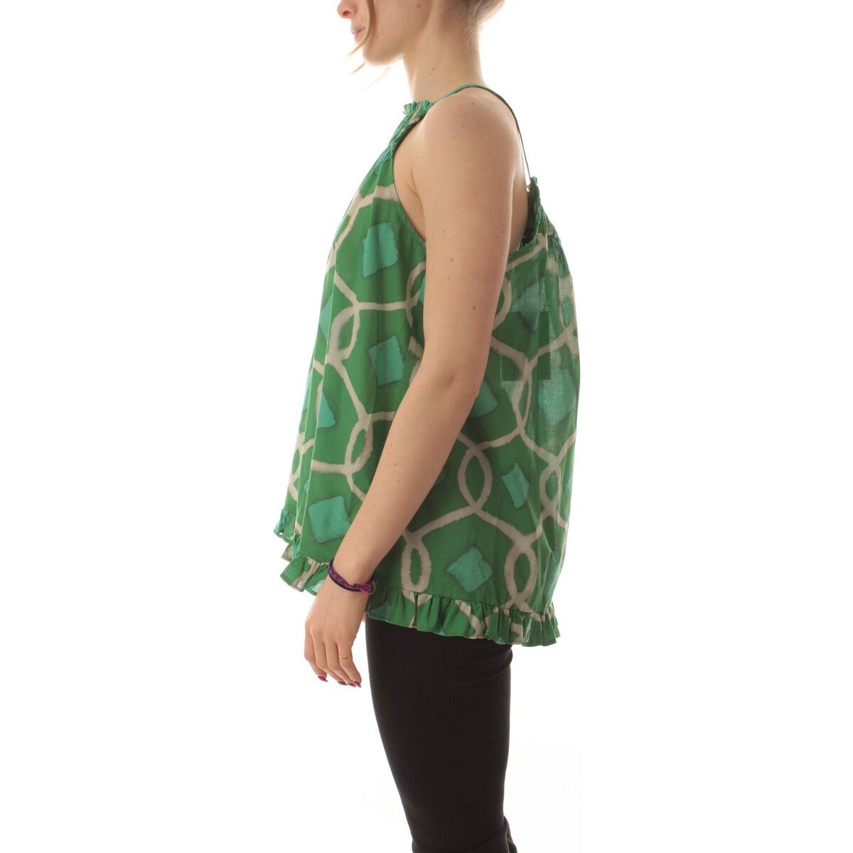 TOP VERDE CON ESTAMPADO .