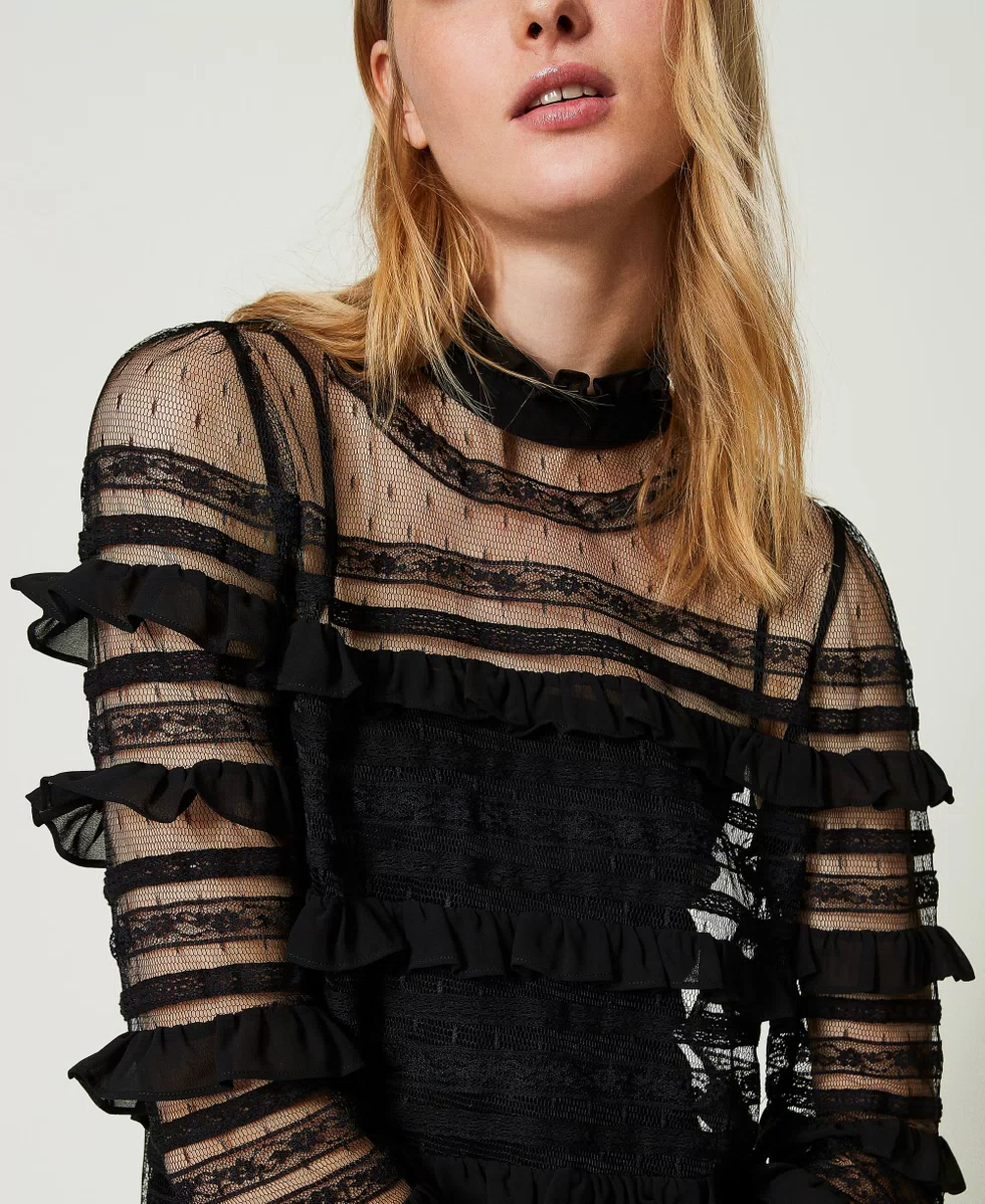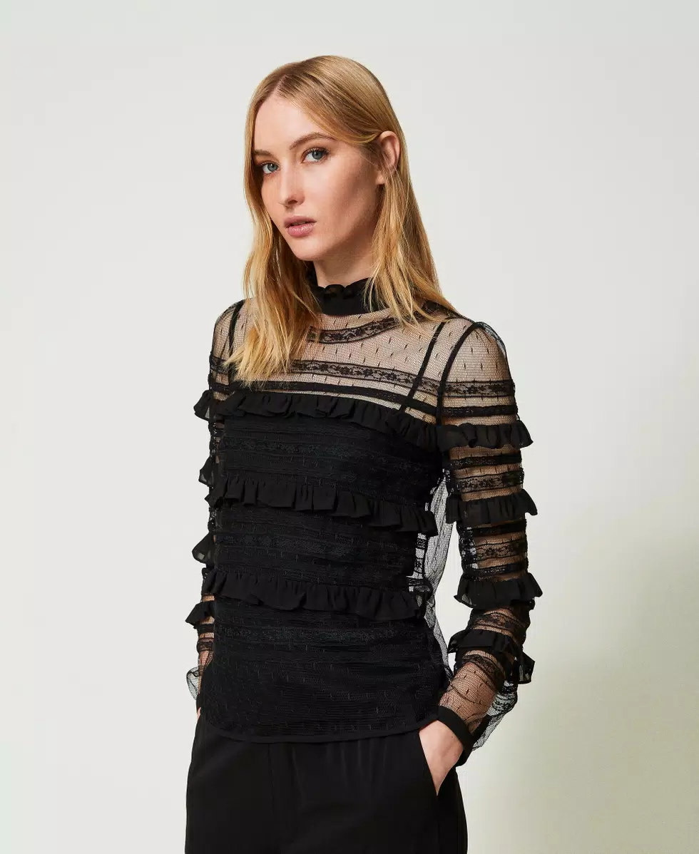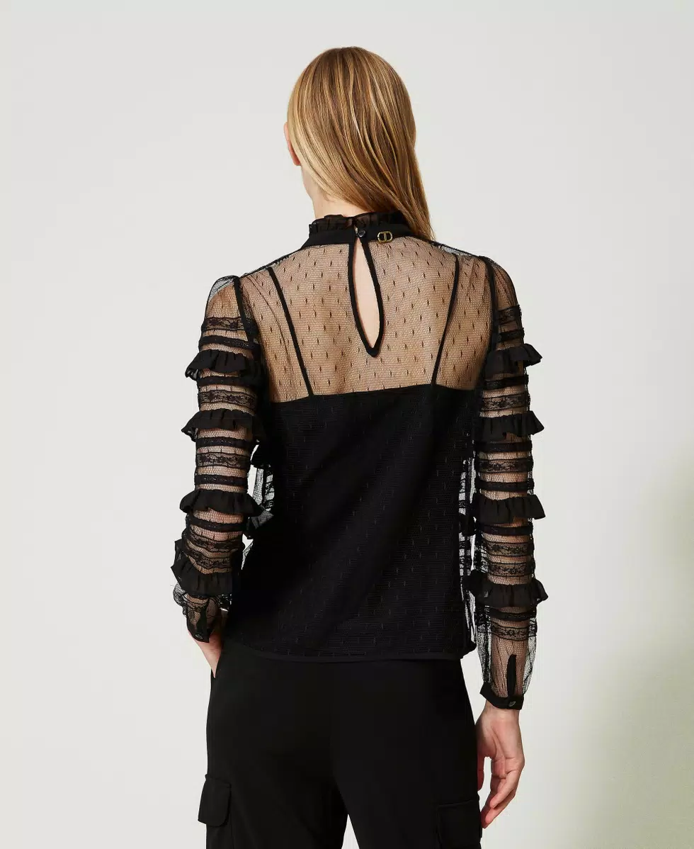Blusa de tul plumetis y encaje