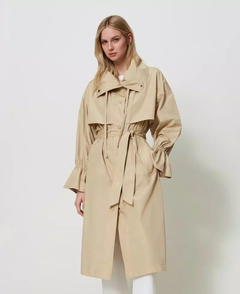 Gabardina de tafetán con cinturón