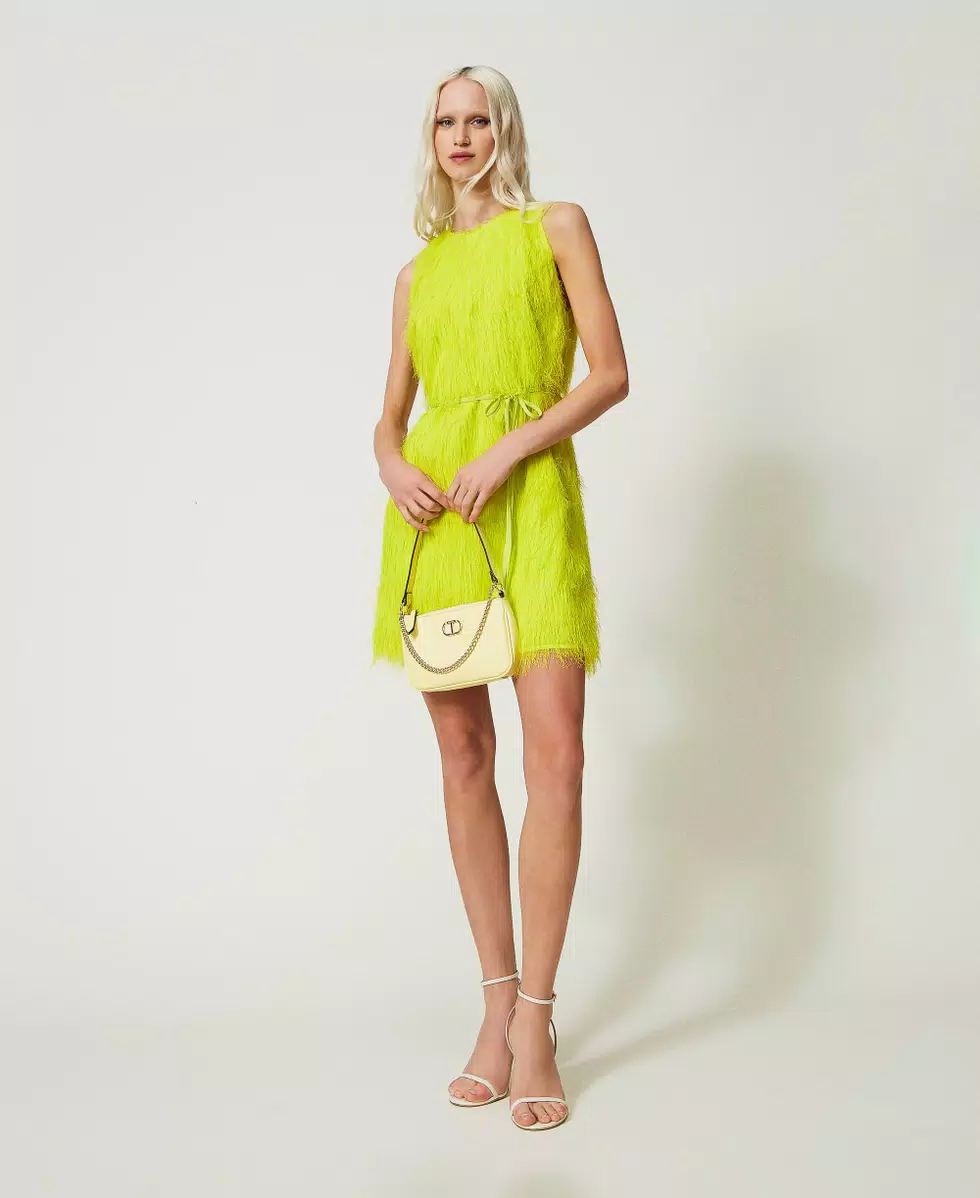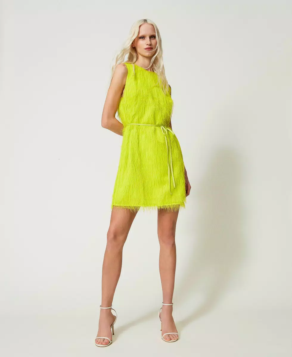 Vestido corto con hilos efecto pluma